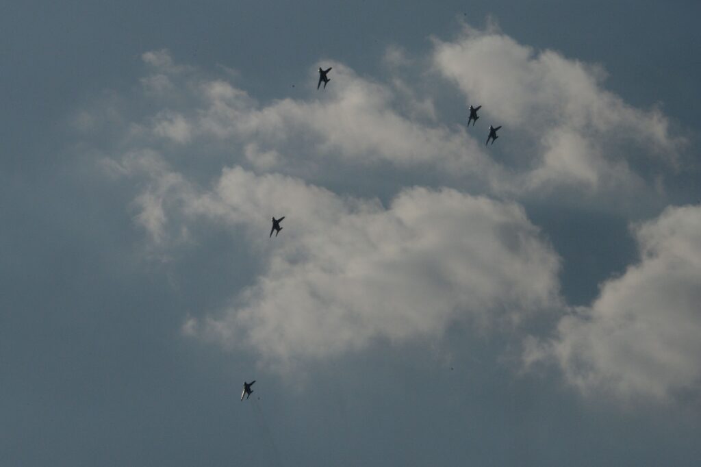ところで百里祭に関してはちょっと面白い話題がある。実を言うと、我が家からはプログラムの一つであるブルーインパルスのパフォーマンスを見ることができる。とは言っても20㎞以上離れているので、当然低い高度でのパフォーマンスは街並みに隠れて見えないし、機体は200mm以下の望遠レンズではごく小さな点にしか見えない。というか見えることはまれで、ほとんど見えないと言っていい。だが縦ループなどの高空域を使ったときのスモークはよく見える。問題は天候で、曇り空が背景だとよく見えないし、雲が低いと全く見えない。だから記憶に残っているのは数回だけ。