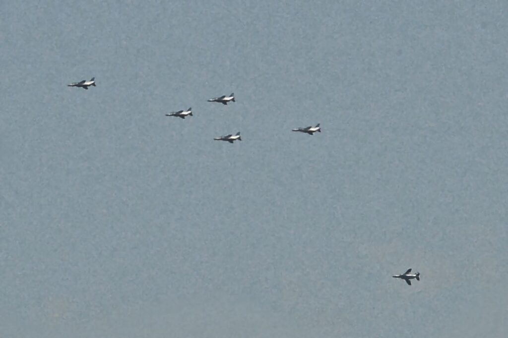 今年は当日の予報がほぼ快晴。これは久しぶりにいけるかも、と思い、Youtubeで百里祭のライブ動画を見ながらカメラの準備をした。ところが、演技が始まっても我が家のベランダからは何も見えない。飛行する空域が昔とは違うのだろうか。